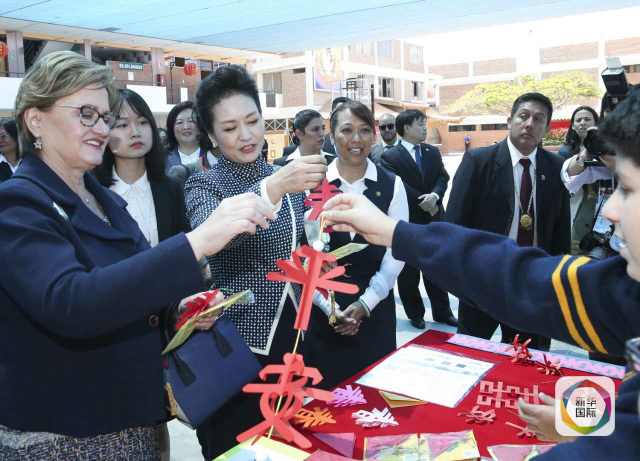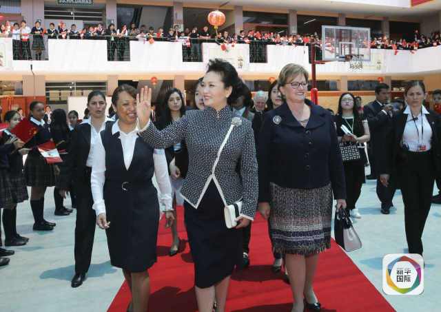 ??? 彭麗媛抵達時,秘魯總統夫人蘭格和學校校長在下車處迎接,校長為彭麗媛獻上鮮花。若望二十三世秘中學校創辦于1962年,是從幼兒園到中學教育的全日制學校,也是秘魯乃至南美洲最具影響的華文學校之一。