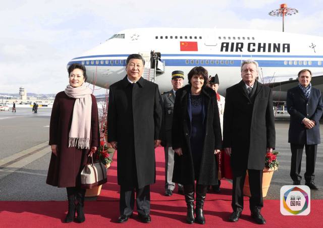 1月15日,國(guó)家主席習(xí)近平乘專機(jī)抵達(dá)蘇黎世,開(kāi)始對(duì)瑞士聯(lián)邦進(jìn)行國(guó)事訪問(wèn)。這是瑞士聯(lián)邦主席洛伊特哈德在機(jī)場(chǎng)為習(xí)近平和夫人彭麗媛舉行隆重歡迎儀式。(新華社記者蘭紅光攝)