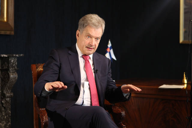 4月3日,在芬蘭赫爾辛基,芬蘭總統尼尼斯托接受新華社記者的專訪。(新華社記者張璇攝)
