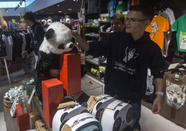 6月24日,來自四川成都大熊貓繁育研究基地的“夢夢”和“嬌慶”抵達柏林。在兩只可愛的大熊貓順利通過隔離檢疫期后,位于柏林動物園內的大熊貓館即將正式對公眾開放。柏林動物園準備了數十種熊貓周邊商品,包括玩偶、畫冊、飾品、杯子和包袋等。