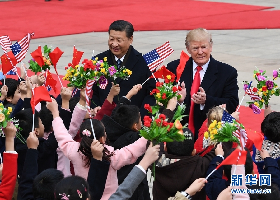 11月9日,國家主席習近平在北京人民大會堂東門外廣場舉行歡迎儀式,歡迎美利堅合眾國總統唐納德·特朗普對中國進行國事訪問。 新華社記者饒愛民攝