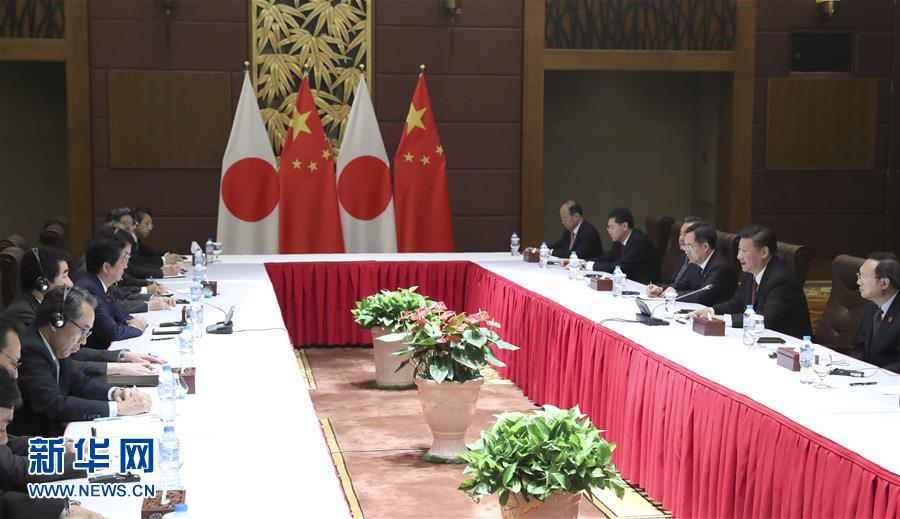 ? ?11月11日,國家主席習(xí)近平在越南峴港會(huì)見日本首相安倍晉三。新華社記者 馬占成 攝