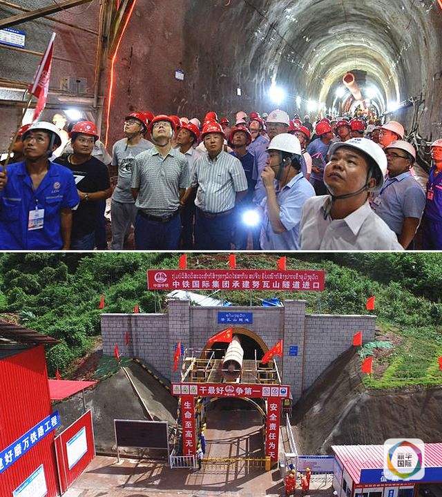 接片:上圖,10月12日,老中鐵路有限公司組織由200多人組成的大型觀摩團,觀摩中老鐵路努瓦山隧道施工;下圖,老撾烏多姆賽省孟賽縣中老鐵路努瓦山隧道外景。(新華社發)
