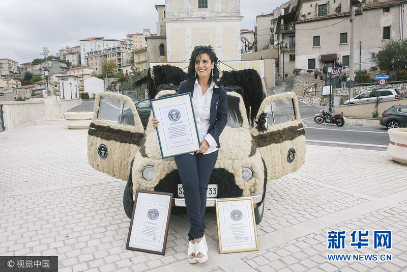 當(dāng)?shù)貢r(shí)間2017年10月22日,意大利帕杜拉,一位意大利發(fā)型設(shè)計(jì)師Maria Lucia Mugno花費(fèi)了超過(guò)8萬(wàn)英鎊來(lái)裝飾自己的車(chē)子,這讓她獲得了吉尼斯世界紀(jì)錄。這項(xiàng)工程需要150個(gè)小時(shí)來(lái)完成,用于裝飾的頭發(fā)總重量達(dá)到100公斤。(圖片來(lái)源:視覺(jué)中國(guó))