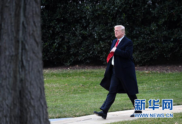 12月22日,在美國華盛頓白宮,美國總統(tǒng)特朗普簽署減稅法案后準備乘直升機離開。 新華社記者殷博古攝