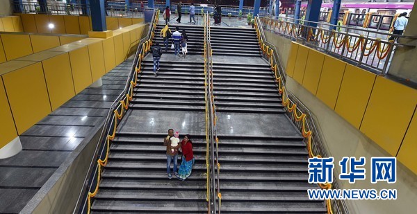12月25日,在印度首都新德里洋紅色地鐵線,人們站在站臺(tái)臺(tái)階上駐足留影。當(dāng)日,連接新德里及其衛(wèi)星城諾伊達(dá)(Noida)之間的洋紅色地鐵線建成通車。這條線路全長12.64公里。德里地鐵公司計(jì)劃未來提高這條地鐵線路自動(dòng)化水平,以“無人值守模式”運(yùn)行。目前,新德里運(yùn)營地鐵線路共有7條,分別用顏色命名,包括紅色、黃色、藍(lán)色、綠色、橙色、紫羅蘭和洋紅色。新華網(wǎng)發(fā) (張迺杰 攝)