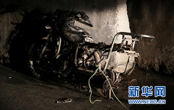 這是1月4日在阿富汗首都喀布爾爆炸現(xiàn)場拍攝的一輛受損的摩托車。新華社發(fā)(賈韋德·奧米德攝)