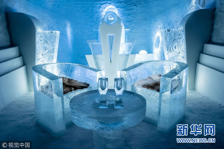 當(dāng)?shù)貢r(shí)間2018年1月12日,瑞典朱卡斯亞維村,瑞典冰雪酒店已在今年冬季重新開放,來自17個(gè)國家的36位藝術(shù)家參與了設(shè)計(jì)。自1989年以來,酒店每年都會(huì)在位于北極圈以北200公里處的瑞典朱卡斯亞維村莊重建,位置靠近托爾納河河畔。今年,藝術(shù)家們使用3萬立方米的冰雪建造了冰雪酒店,用500噸晶瑩剔透的天然冰制作了玻璃和冰雪酒吧。酒店擁有35個(gè)設(shè)計(jì)獨(dú)特的豪華套房、一個(gè)冰雕禮堂和一個(gè)全新的兒童樂園。在主廳里,1000個(gè)手工拋光的冰晶被制作成引人注目的吊燈。在冰雕禮堂中,有200個(gè)手工雕刻的植物裝點(diǎn)著墻壁。(圖片來源:視覺中國)