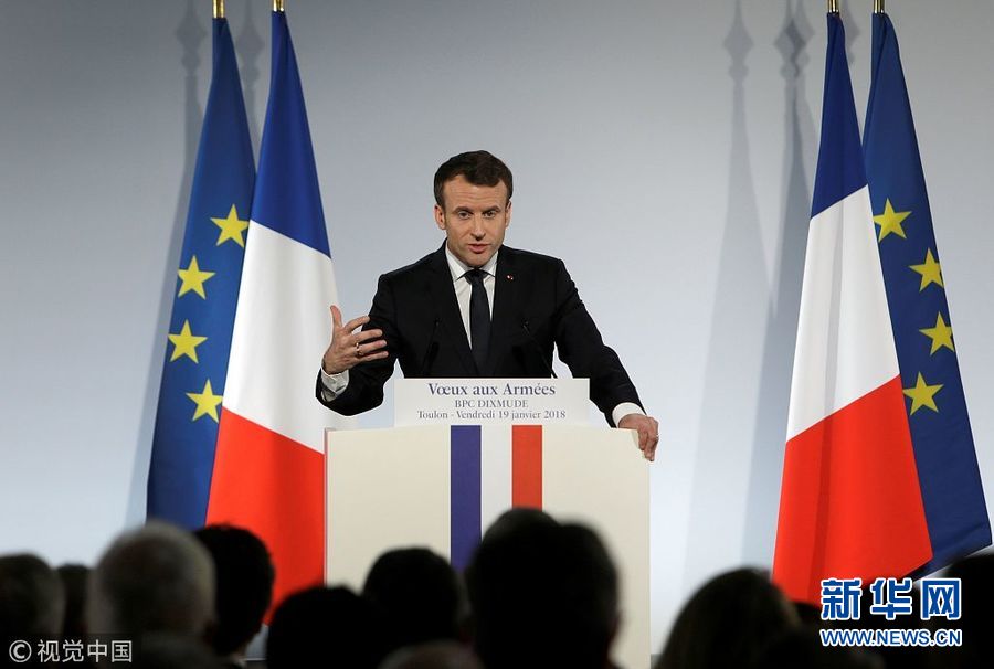 1月19日,法國土倫,法國總統(tǒng)馬克龍視察了當?shù)氐暮\娀夭⑾蚴勘鴤儼l(fā)表新年祝福。(圖片來源:視覺中國)