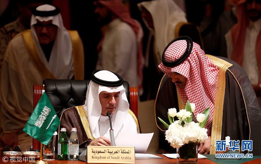 1月22日,沙特利雅得,沙特主導的打擊也門反政府武裝盟國舉行外長會議。為緩解人道危機,沙特主導的多國聯軍22日發表聲明說,將向也門提供15億美元的新援助。同時,打開一條通往中部馬里卜省的空中走廊以及17條陸上走廊,以運送援助物資;增擴也門口岸,以接收人道和基本物資。(圖片來源:視覺中國)