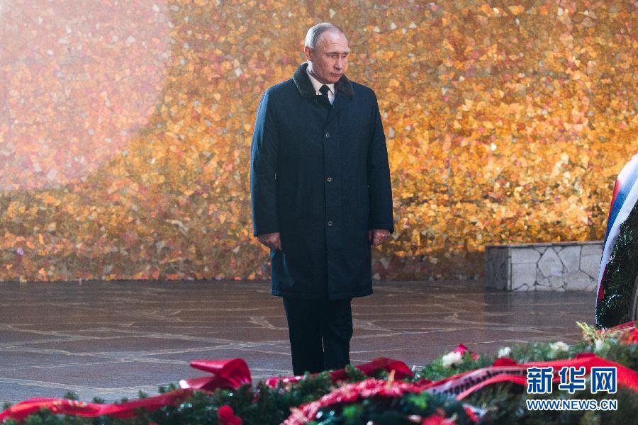 2月2日,在俄羅斯伏爾加格勒的斯大林格勒保衛戰國家歷史紀念博物館,俄羅斯總統普京在長明火前肅立。俄羅斯2日在伏爾加格勒(原斯大林格勒)舉行盛大閱兵式,紀念斯大林格勒保衛戰勝利75周年。斯大林格勒保衛戰于1942年7月爆發,持續至1943年2月,歷時六個半月。蘇聯和德國雙方總傷亡人數估計超過200萬。俄羅斯歷史學家認為,斯大林格勒保衛戰是二戰真正的轉折點。新華社記者白雪騏攝