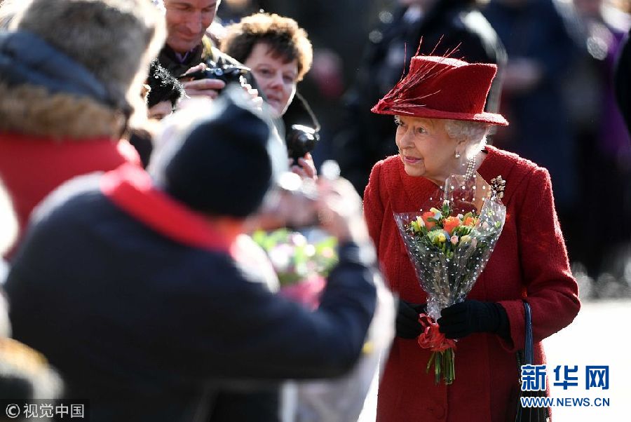 英國(guó)女王出席教堂晨禱儀式 收到鮮花喜上眉梢