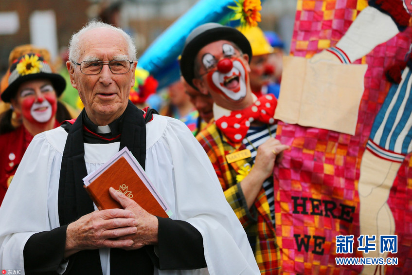 英國倫敦小丑歡聚一堂 紀念“小丑之父”