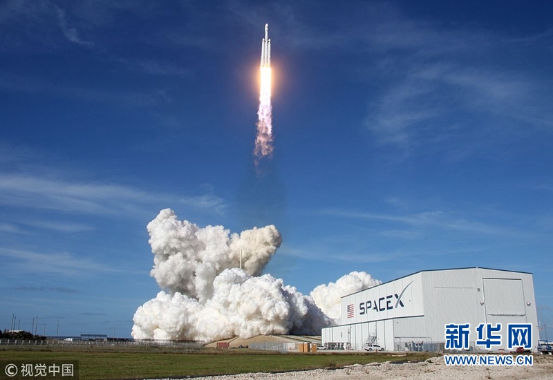 當(dāng)?shù)貢r間2018年2月6日,美國佛州卡納維拉爾角,美國重型運(yùn)載火箭“獵鷹重型”6日攜帶一輛特斯拉跑車發(fā)射升空。(圖片來源:視覺中國)