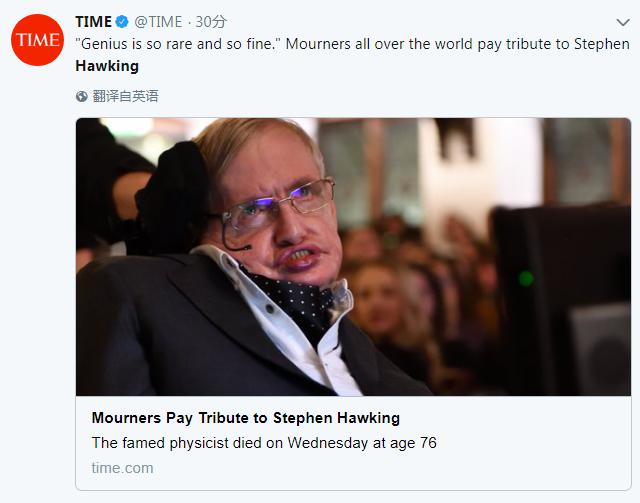 霍金去世,世界各地網(wǎng)友在社交媒體發(fā)起紀念活動