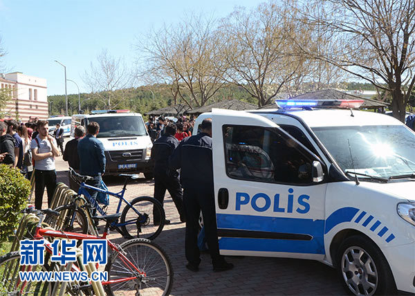4月5日,在土耳其埃斯基謝希爾,警方到達發生槍擊案的大學校園。新華社發