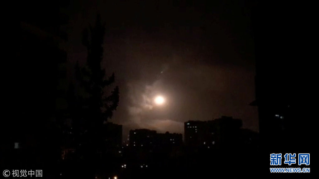 4月14日,敘利亞大馬士革,特朗普決定聯合英國和法國對敘利亞進行精確打擊,大馬士革傳出爆炸聲,敘利亞方面進行反擊。敘利亞阿拉伯敘利亞通訊社(SANA)報道,敘政府軍在大馬士革以南地區擊落13枚導彈。敘利亞國家電視臺此前稱美英法三國對敘利亞“發動了侵略”。(圖片來源:視覺中國)