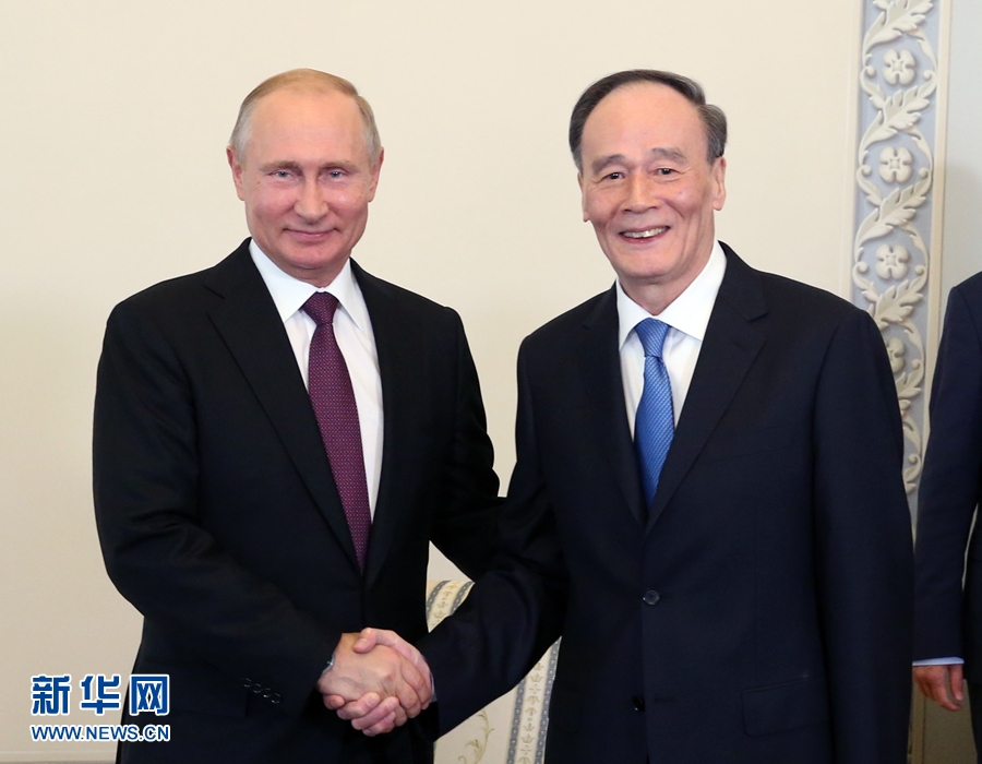 王岐山首先轉達了習近平主席對普京的誠摯問候和良好祝愿。他說,習近平主席高度重視中俄關系,珍視與普京總統的友誼,期待著同你再次會晤,共同規劃中俄關系和上海合作組織下一步發展。