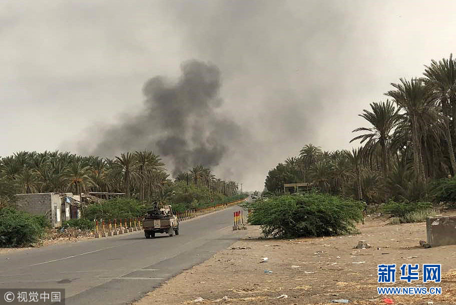 6月19日,也門荷臺達,也門親政府力量在沙特領導的軍事聯盟的支持下攻占荷臺達機場。也門國防部19日說,在沙特阿拉伯領導的多國聯軍支援下,也門政府軍當天完成對荷臺達國際機場的清剿任務并完全控制了整座機場。聯合國也門問題特使馬丁·格里菲思當天離開也門,他在當地的斡旋未有任何成果。(圖片來源:視覺中國)