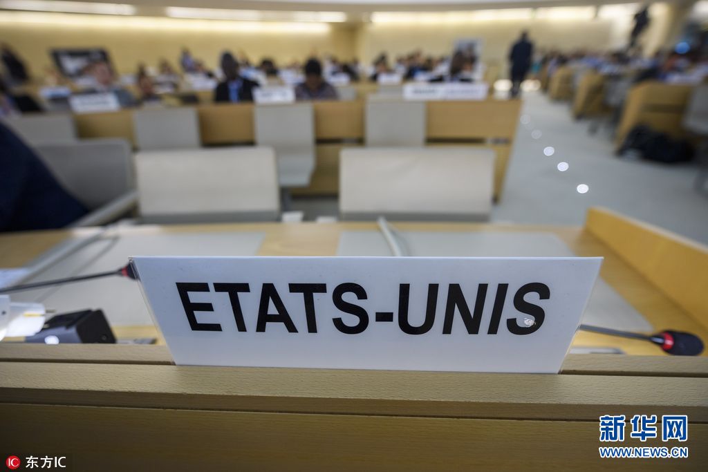 6月20日,瑞士日內瓦,聯合國人權理事會召開會議,美國代表席位空缺。美國常駐聯合國代表黑莉19日下午在華盛頓宣布,美國退出聯合國人權理事會。(圖片來源:東方IC)