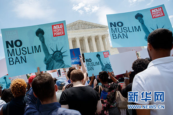 新華社快訊:美國最高法院26日裁決支持總統特朗普針對一些中東非洲國家的移民限制令。2018-06-26 22:51:21
