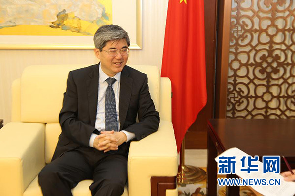 7月1日,中國駐保加利亞大使張海舟在索非亞中國駐保加利亞使館接受新華社記者專訪。 新華社記者 戰小漪 攝