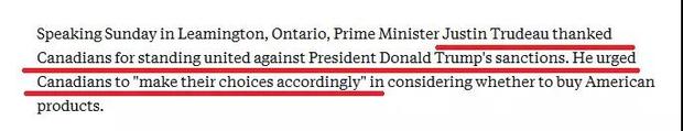 第三,大是大非上一定要團(tuán)結(jié)一致。一說到團(tuán)結(jié),有的人總會聯(lián)想過于豐富:要么認(rèn)為這是要老百姓放棄自己的思考,要么認(rèn)為必須通過極端方式表達(dá)自己洶涌的激情——我們印象里一向溫和的加拿大,這次是怎么做的?用美聯(lián)社報道的話:特魯多在利明頓市演講時表示:感謝加拿大民眾團(tuán)結(jié)一致反對特朗普的制裁,并鼓勵民眾根據(jù)自己的實際情況做出要不要買美國產(chǎn)品的選擇。特魯多為什么這樣說?事實上,自從G7之后特朗普攻擊特魯多“軟弱”“虛偽”以來,推特上“購買加拿大產(chǎn)品”“抵制美國貨”“抵制美國”“擺脫川普”等話題就在不斷升溫,很多加拿大人調(diào)整了消費習(xí)慣,轉(zhuǎn)而購買自己國家的產(chǎn)品。網(wǎng)友們的這些抵制活動,被特魯多稱為是一股“愛國熱情”。