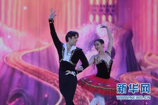 兩位演員在“斯拉夫巴扎”國際藝術節上表演芭蕾。新華社記者 魏忠杰攝