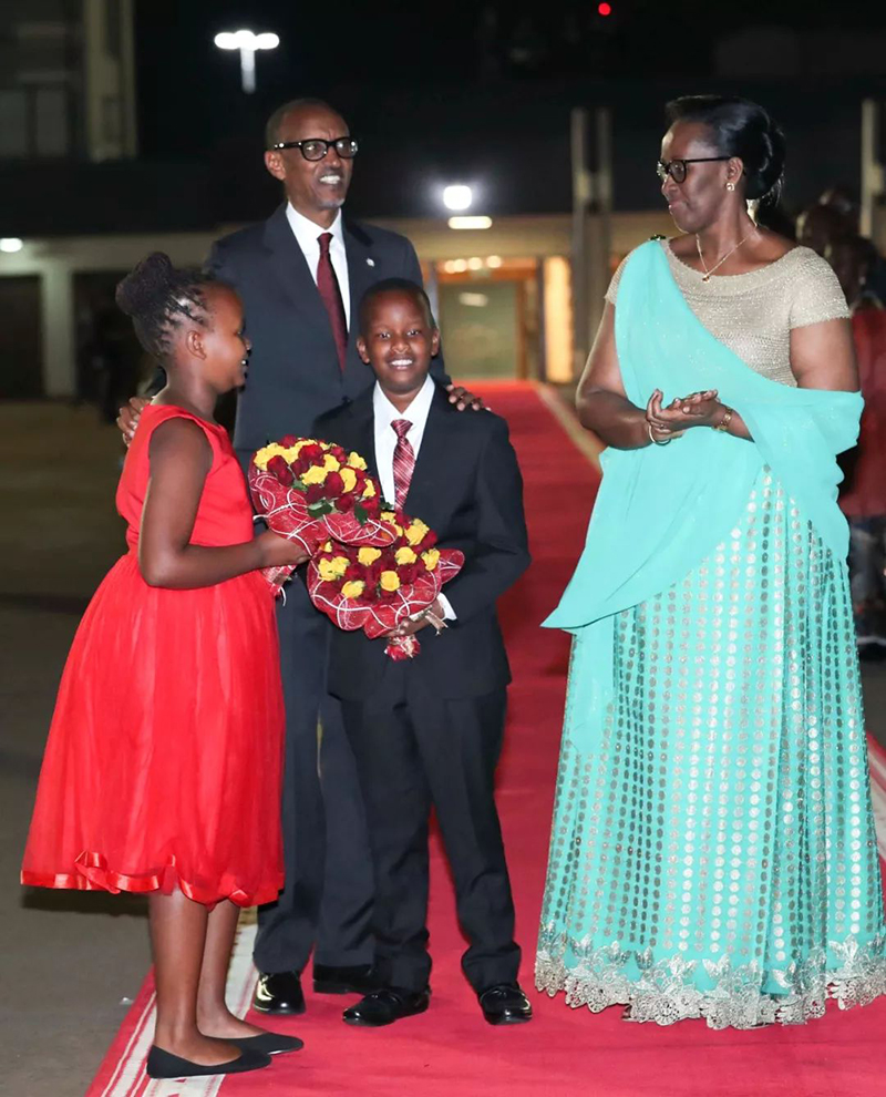 夜空之下,基加利國際機場。山光點點,笑臉盈盈,樂鼓咚咚。卡加梅總統夫婦在這里為習近平主席和夫人彭麗媛舉行隆重的歡迎儀式。