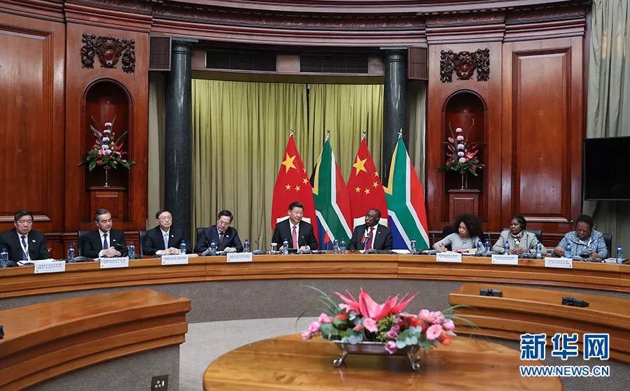 ▲7月24日,國家主席習(xí)近平在比勒陀利亞同南非總統(tǒng)拉馬福薩舉行會談。 (新華社)