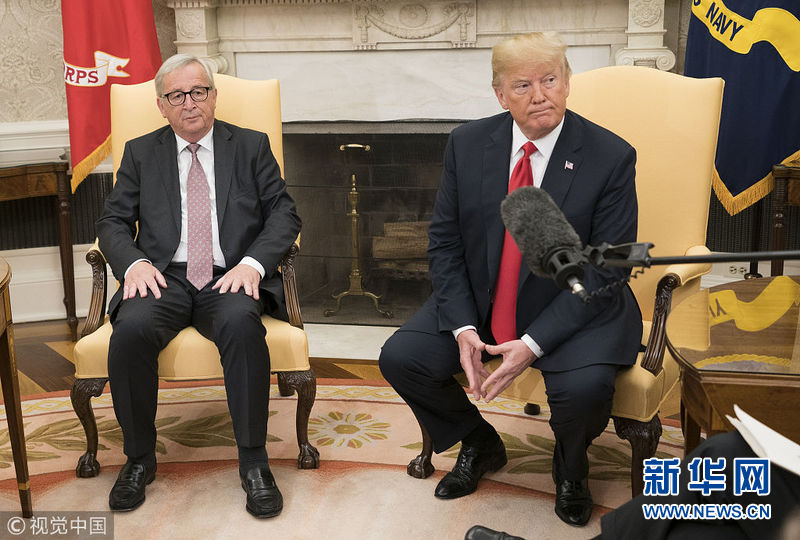 2018年7月25日,美國華盛頓,美國總統特朗普與歐盟委員會主席容克會面。(圖片來源:視覺中國)