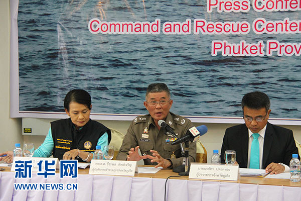 8月7日,普吉府警察局局長提拉蓬·提乍龍(中)在發布會上介紹案件調查情況。新華社記者 徐海濤 攝