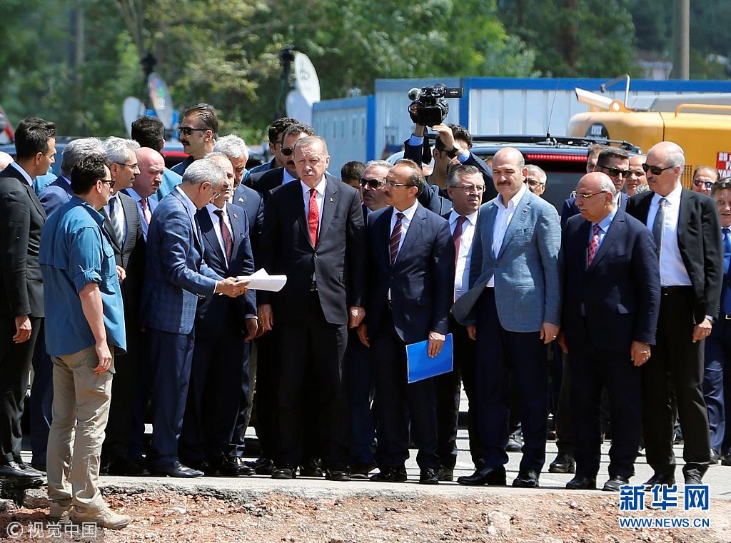 當地時間2018年8月11日,土耳其奧爾杜,土耳其總統埃爾多安赴當地視察洪災區。 (圖片來源:視覺中國)