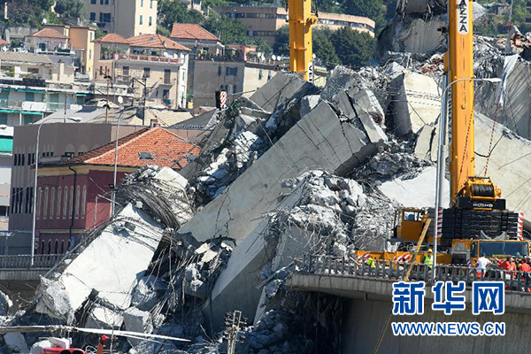 意大利北部熱那亞地區的莫蘭迪公路橋14日發生垮塌。該公路橋建于上世紀60年代,是連接A10公路與熱那亞城西部的一座主要公路橋,橋長1182米、寬18米,最高處離地面90米。橋面垮塌時,路面有超過30輛機動車在行駛。當地媒體援引民事保護部門和消防部門官員的話說,事故原因可能是橋體存在結構問題。