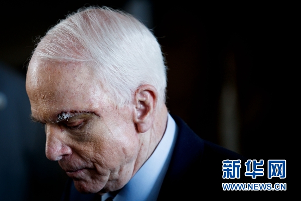 這是2017年7月25日在美國華盛頓國會山拍攝的麥凱恩投票后離開的資料照片。 新華社發(沈霆攝)