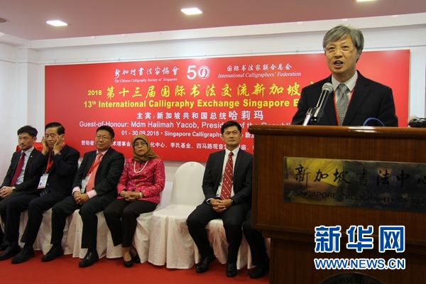 國(guó)際書法家聯(lián)合總會(huì)秘書長(zhǎng)陳洪武在致辭時(shí)說(shuō),新加坡書法家協(xié)會(huì)是新加坡最早的全國(guó)性書法組織,也是國(guó)際書法家聯(lián)合總會(huì)的發(fā)起者和首創(chuàng)者之一。