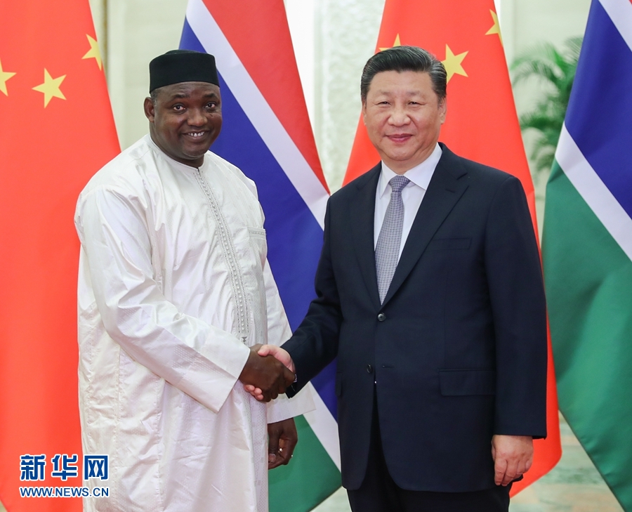 習近平歡迎岡比亞總統首次出席中非合作論壇會議,指出這對中岡關系、中非關系、論壇建設均具有重要意義。習近平強調,中岡復交2年多來,雙方友好合作全面、順利推進,雙邊關系發展得很好、很快,中方對兩國關系發展取得的成果感到滿意。中方贊賞總統先生和岡比亞政府堅持一個中國原則,愿同岡方繼續把握好兩國關系的大方向,不斷增進政治互信,繼續在涉及彼此核心利益和重大關切問題上相互堅定支持。中方支持岡比亞政府“建設新岡比亞”的努力,愿加強務實合作,擴大人文交流。中方支持岡方加強和平安全能力建設。