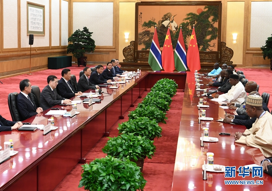 9月6日,國家主席習近平在北京人民大會堂會見岡比亞總統巴羅。 新華社記者高潔攝