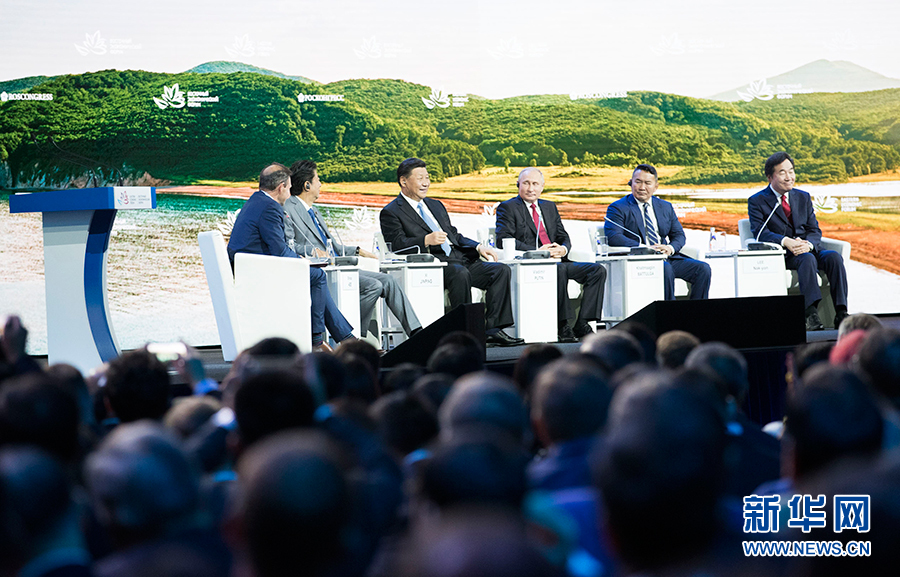 9月12日,第四屆東方經濟論壇全會在符拉迪沃斯托克舉行。中國國家主席習近平出席并發表題為《共享遠東發展新機遇 開創東北亞美好新未來》的致辭。 新華社記者鞠鵬攝