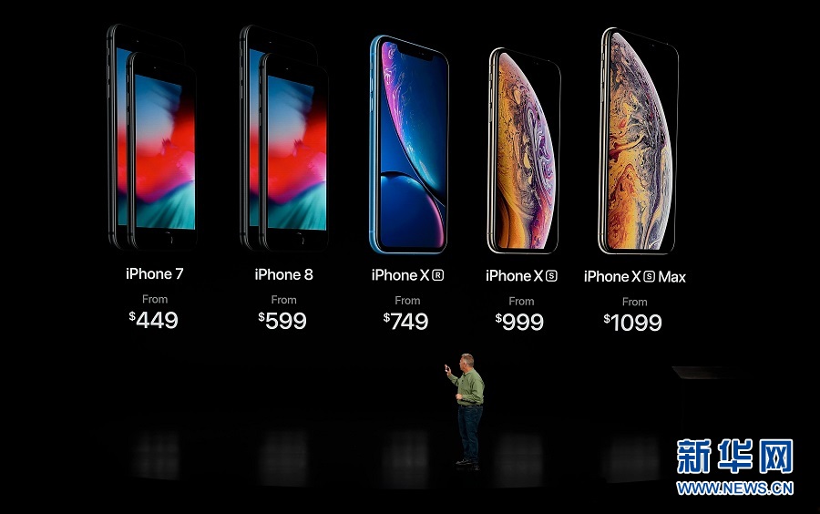 9月12日,在美國加利福尼亞州丘珀蒂諾市舉行的蘋果新品發布會上,蘋果公司全球市場營銷高級副總裁菲利普·席勒介紹蘋果系列手機的售價。美國蘋果公司12日在加州丘珀蒂諾市舉行新品發布會,推出3款智能手機和第四代蘋果手表等產品。其中,手機雙卡雙待功能和手表健康監測應用廣受關注。 新華社發