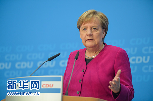 10月29日,在德國(guó)柏林,德國(guó)總理默克爾在基督教民主聯(lián)盟黨內(nèi)發(fā)布會(huì)上講話。新華社記者 連振 攝