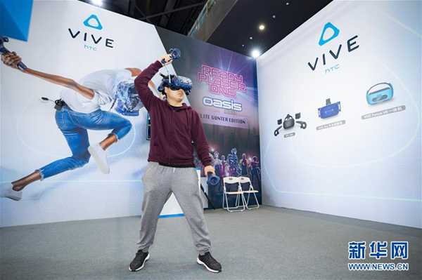 11月7日,參觀(guān)者在第五屆世界互聯(lián)網(wǎng)大會(huì)上體驗(yàn)虛擬現(xiàn)實(shí)技術(shù)。當(dāng)日,第五屆世界互聯(lián)網(wǎng)大會(huì)在浙江烏鎮(zhèn)開(kāi)幕。 新華社記者 才揚(yáng) 攝