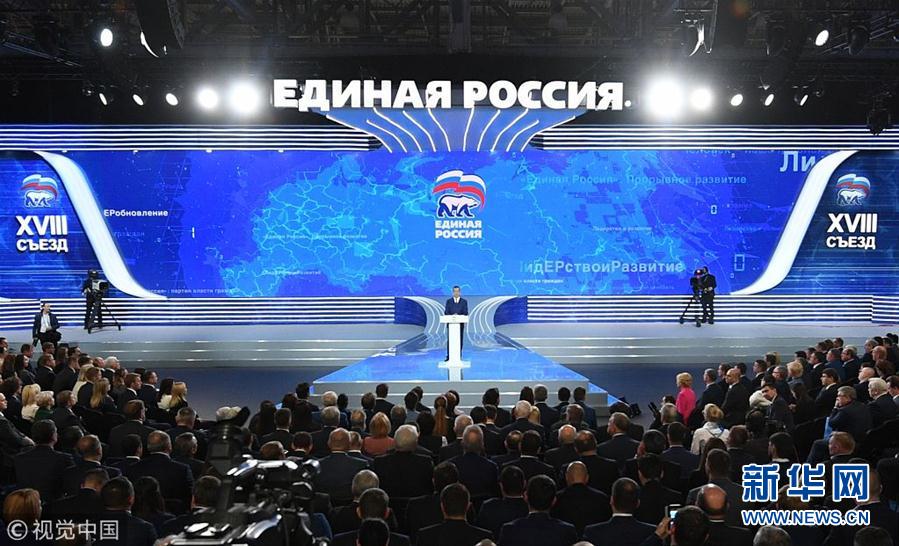 當地時間2018年12月8日,俄羅斯莫斯科,俄羅斯執政黨“統一俄羅斯黨”年度會議舉行,俄羅斯總統普京和總理梅德韋杰夫出席會議。(圖片來源:視覺中國)