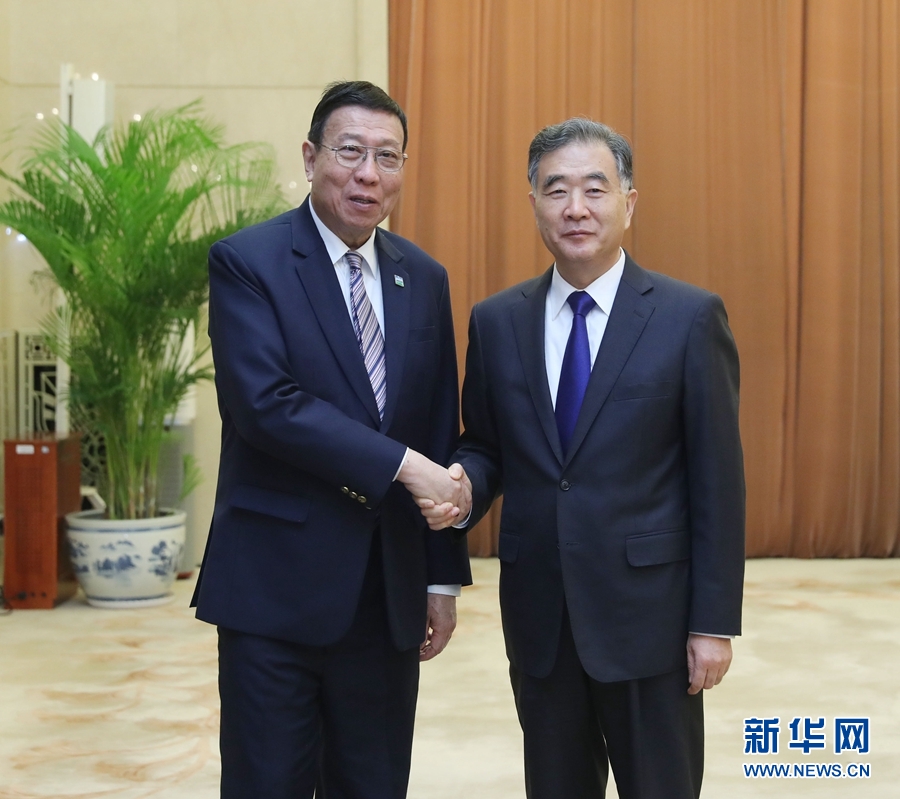 12月14日,全國政協主席汪洋在北京會見泰國立法議會主席蓬貝。 新華社記者劉衛兵攝