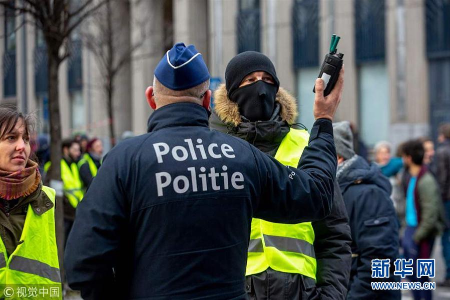 當(dāng)?shù)貢r(shí)間12月15日,比利時(shí)布魯塞爾,當(dāng)?shù)乇l(fā)“黃背心”抗議活動(dòng)。 (圖片來(lái)源:視覺中國(guó))