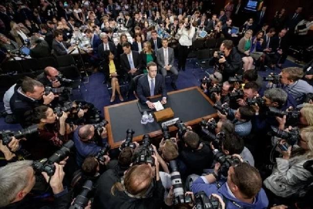美國社交媒體平臺臉書公司首席執行官馬克·扎克伯格2018年4月10日出席聽證會,就用戶數據泄露事件接受國會質詢。新華社發(沈霆 攝)