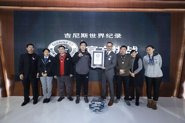 活動現場氣氛熱烈,百余位現場來賓嘗試挑戰“最快時間壘20本《吉尼斯世界紀錄大全》”吉尼斯世界紀錄稱號。最終,來自沈陽的吳岳挑戰成功,由吉尼斯世界紀錄認證官吳曉紅現場認證,并為其頒發證書。