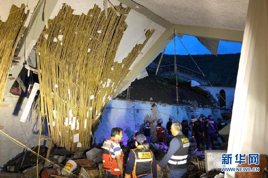 1月27日,在秘魯南部阿普里馬克省首府阿班凱,救援人員在一家酒店發(fā)生墻壁倒塌事故的現(xiàn)場(chǎng)工作。 新華社發(fā)(秘魯國(guó)家民防局供圖)