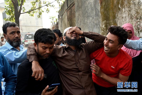 2月21日,在孟加拉國首都達卡,火災(zāi)遇難者的家屬在醫(yī)院內(nèi)慟哭。新華社發(fā)