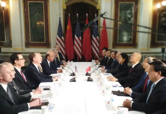 跟1月底那次一樣,第七輪中美經貿高級別磋商開幕式還是在美國白宮艾森豪威爾行政辦公樓舉行。